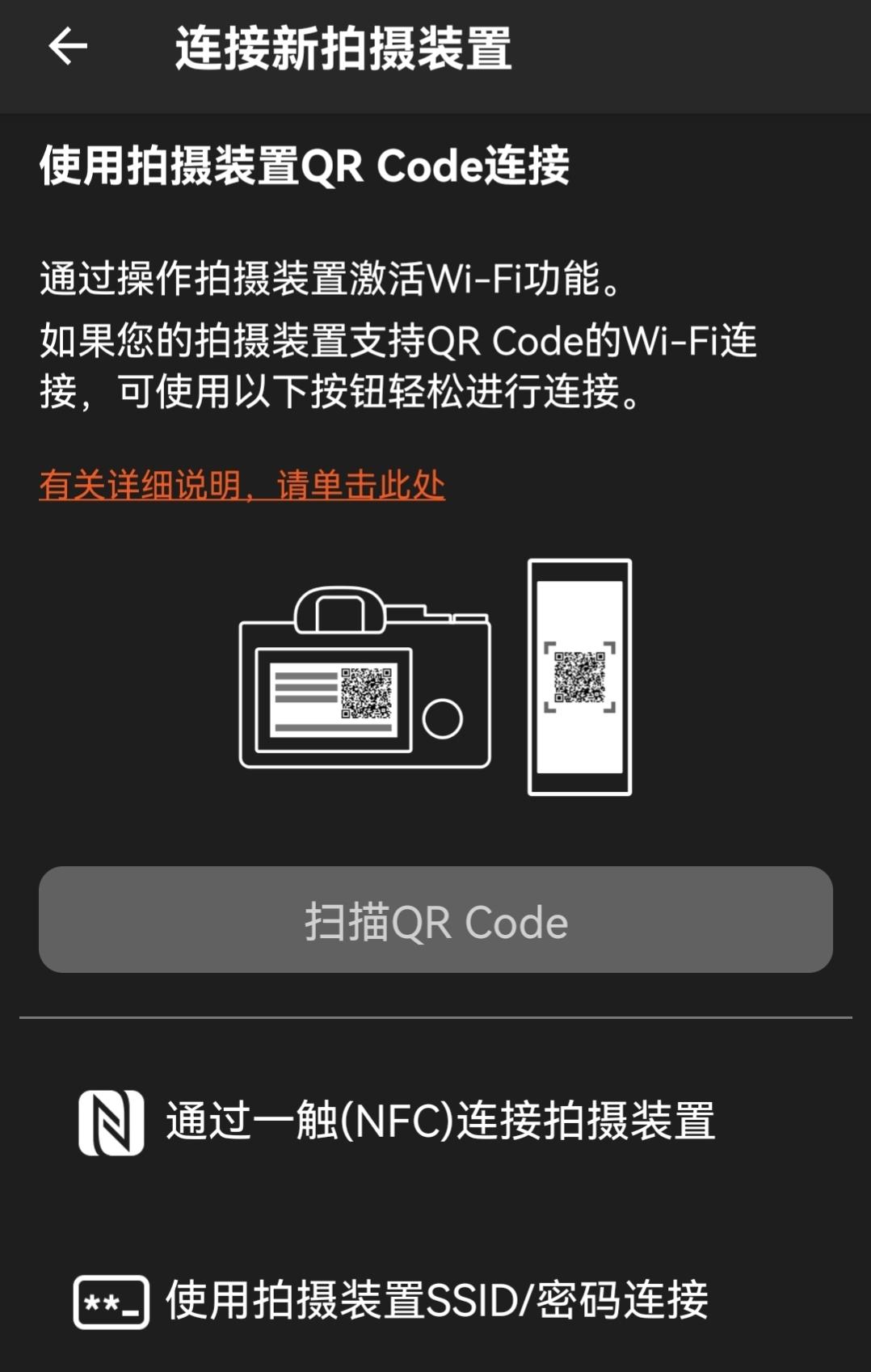 注:老款的索尼微单不会出现二维码,而是会出现WIFI账号和WIFI密码,这时我们首先打开手机的WIFI设置,连接上相机WIFI,然后回到Imaging Edge Mobile软件里,照片就传送成功了。