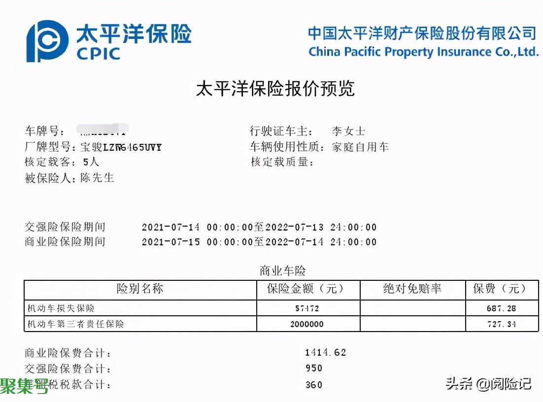家庭自用的小型客车,2016年买的,至今也有快5年时间,买得太平洋车险,看看报价情况:总共交费2724元