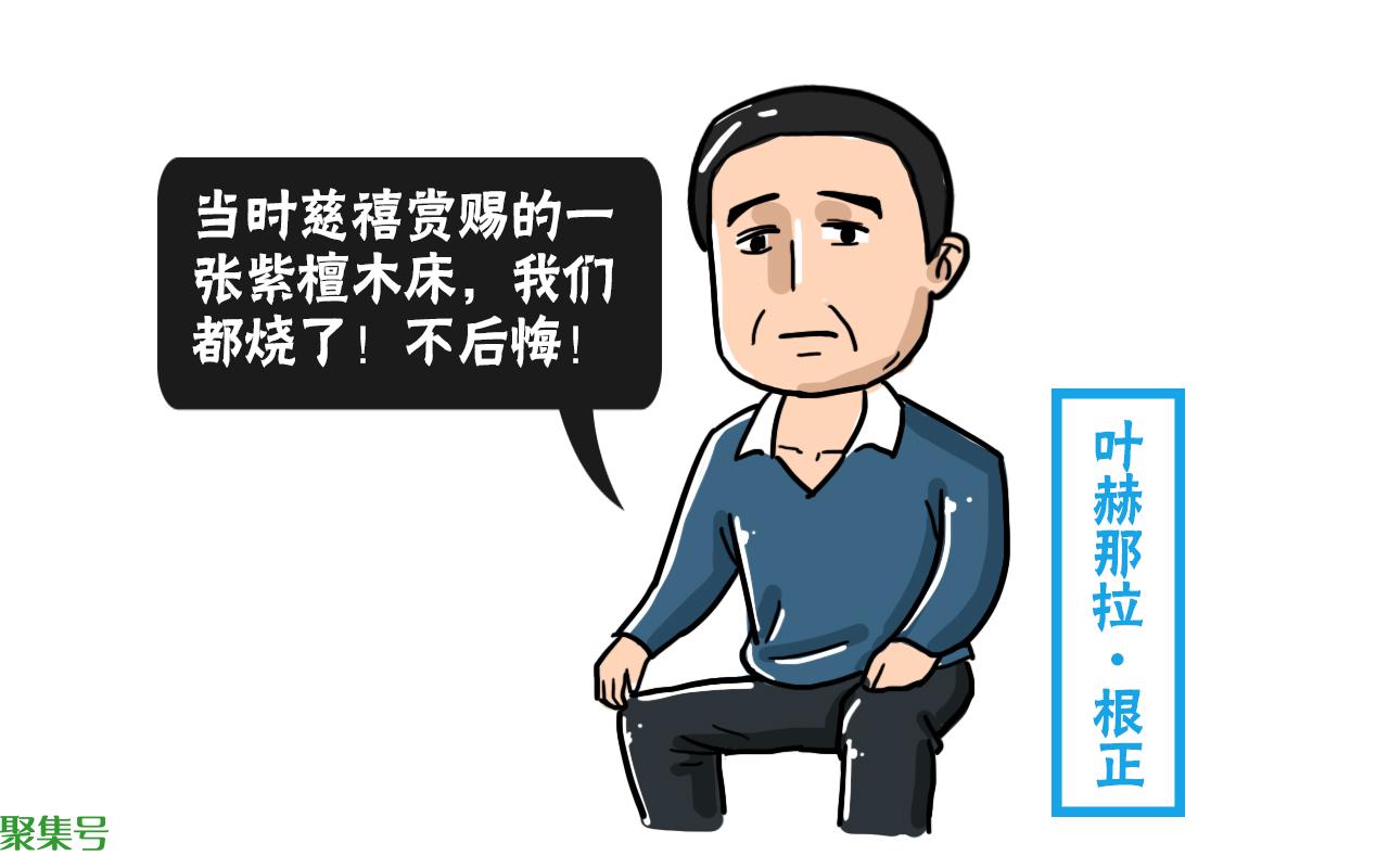据桂祥的曾孙叶赫那拉·根正回忆,在那段特殊的历史时期,家族为了避免被人找上麻烦,焚烧了很多跟慈禧有关的东西。他印象最深的就是慈禧赏赐的一张紫檀木床。那张床从选材、做工上来讲都是上上之作,如果放现在堪称国宝级文物。但就因为是慈禧赏的,所以那张床被劈成了几半,当柴火给烧了。看着熊熊燃起的火光,根正一家人虽心痛不已,但也无可奈何。