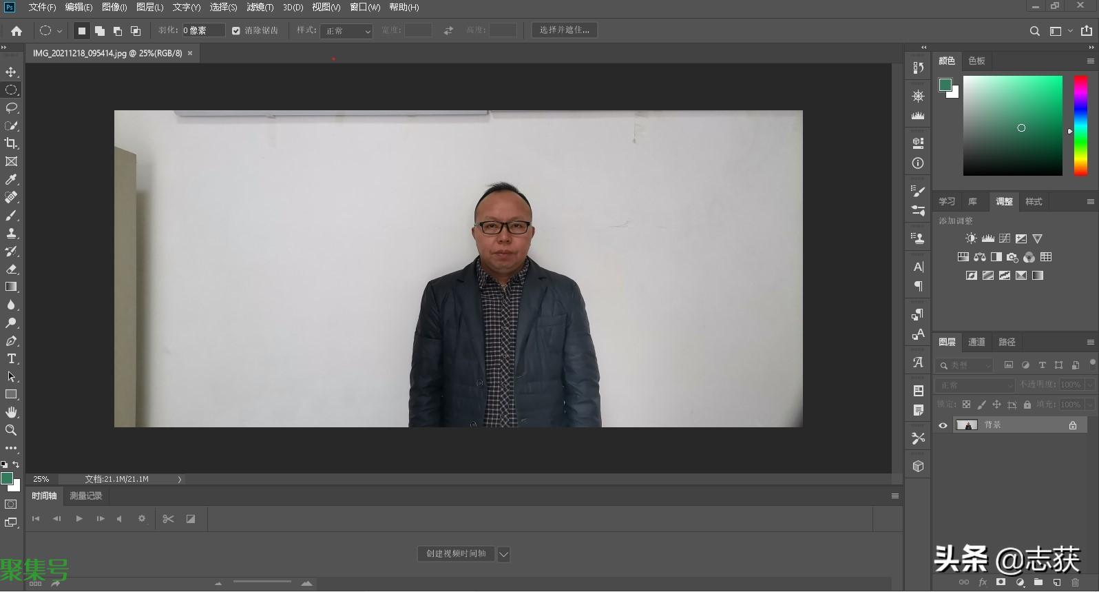 接下来我们在左侧工具栏找到“魔棒工具”,用魔棒点击头像的白色背景部分,按住快捷键Alt+Delete即可将背景色填充为刚才设置好的前景色即红色,如下图: