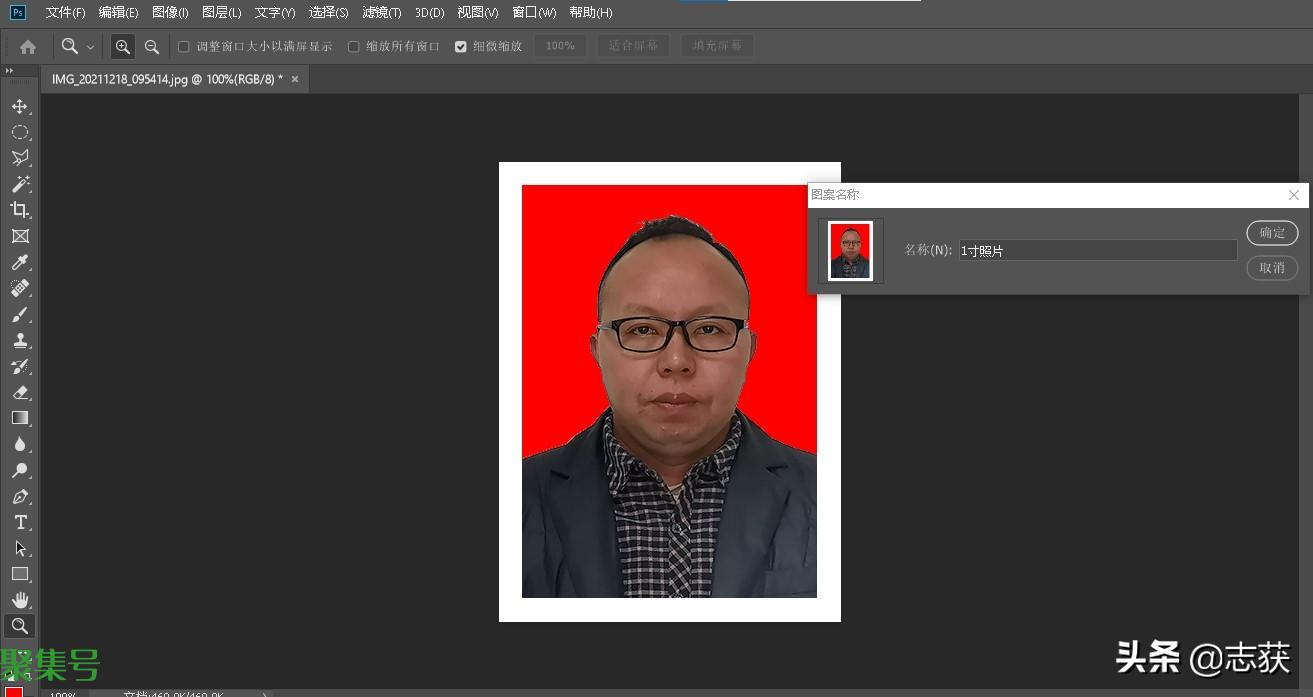 接下来点击“编辑-定义图案”,将图片名称名为1寸照片,如下图。