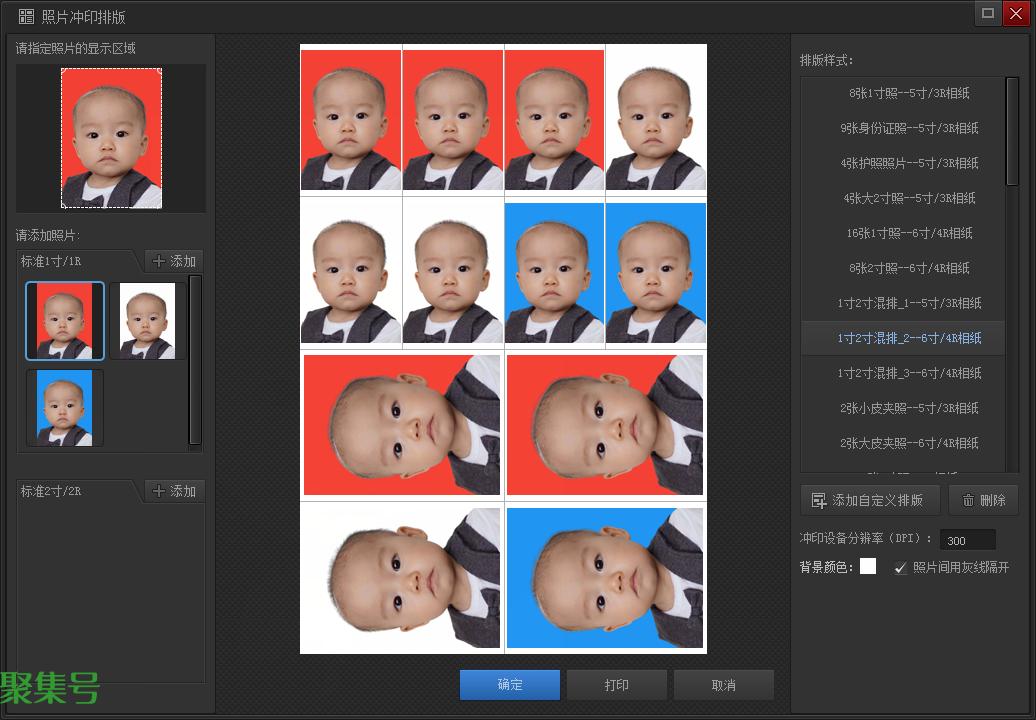 排好版,一张相纸可以同时打印出1寸和2寸的照片,还可以多种底色的同时打,一次打印满足多种需求。
