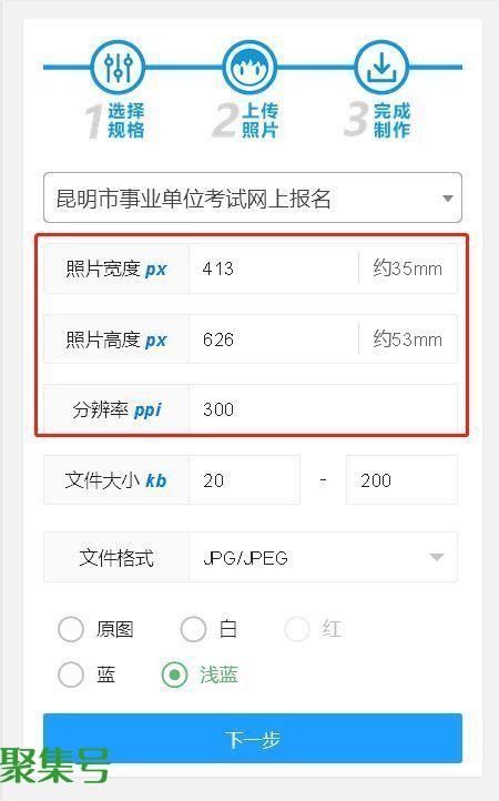 4、以各市事业单位考试报名为例,搜索找到后即可自动设定照片尺寸规格