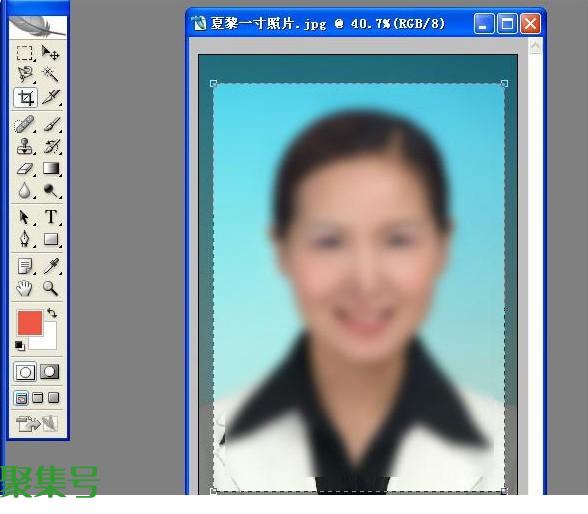 2.在工具栏,点裁剪工具(调宽度:2.5厘米,高度:3.5厘米,分辨率:300像素),在照片上选取合适的位置,点属性栏(确定√)(如下图)