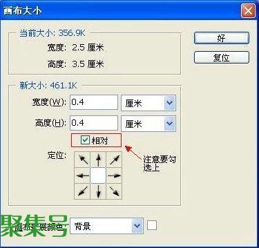 3.点图像一画布大小:(调宽:0.4厘米,高:0.4厘米,相对:打√)点确定(如下图)