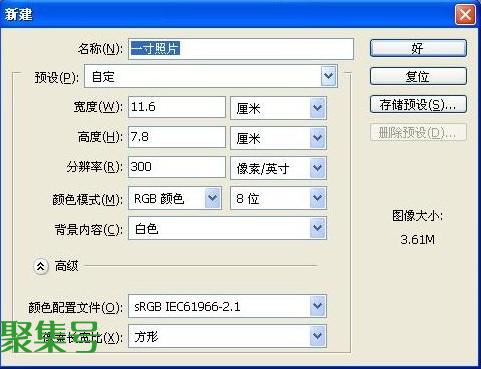 5新建一个画布:点文件--新建(调宽度:11.6厘米,高度:7.8厘米,分辨率300像素/英寸)(如下图)