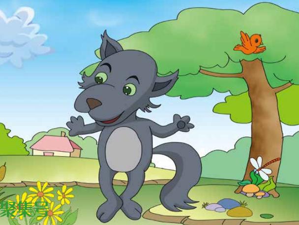 小红帽的奶奶住在森林的另一边,小红帽刚走进森林,就碰到了一只大灰狼。