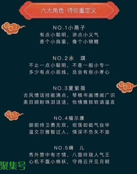根据图上的人物小传,角色设定基本与《还珠格格》一致,不过剧组也打出了“重新定义六大角色”的标签。