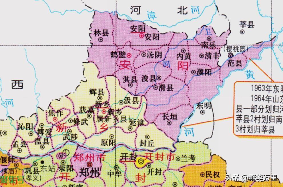 1954年,濮阳专区被撤销以后,部分县划入了安阳专区管理。此时,安阳专区下辖了安阳县、林县、淇县、汤阴县、浚县、濮阳县、南乐县、清丰县、内黄县、滑县等大片地区。1958年,安阳专区被撤销以后,下辖的各个县,划入了新乡专区管理。这一阶段,新乡专区的管辖范围非常大,管理了几乎整个黄河以北地区。当然,区划面积太大,也出现了各方面的问题。
