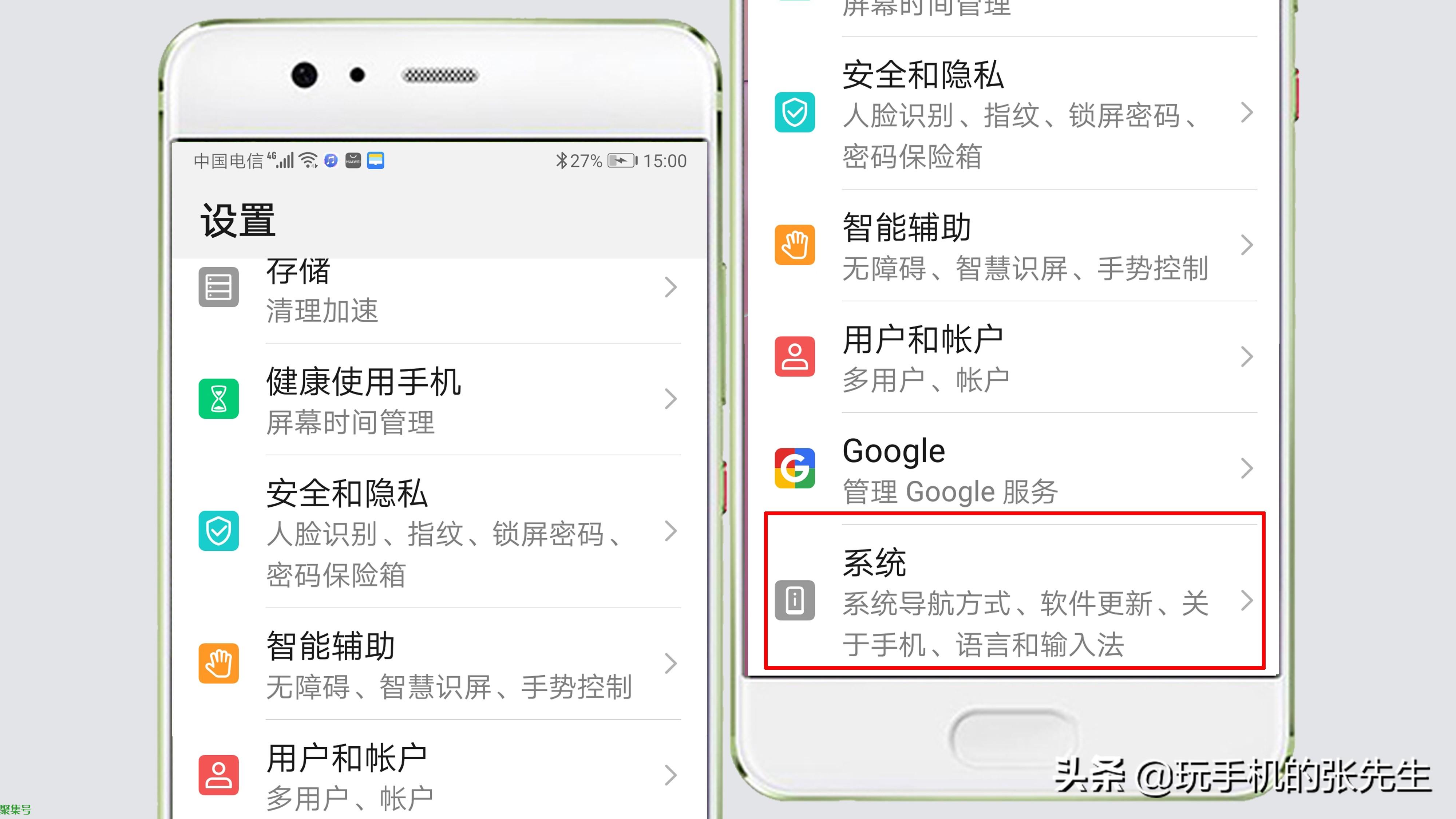 5、点击“关于手机”窗口左上角的后退按钮,返回到“系统”功能列表。