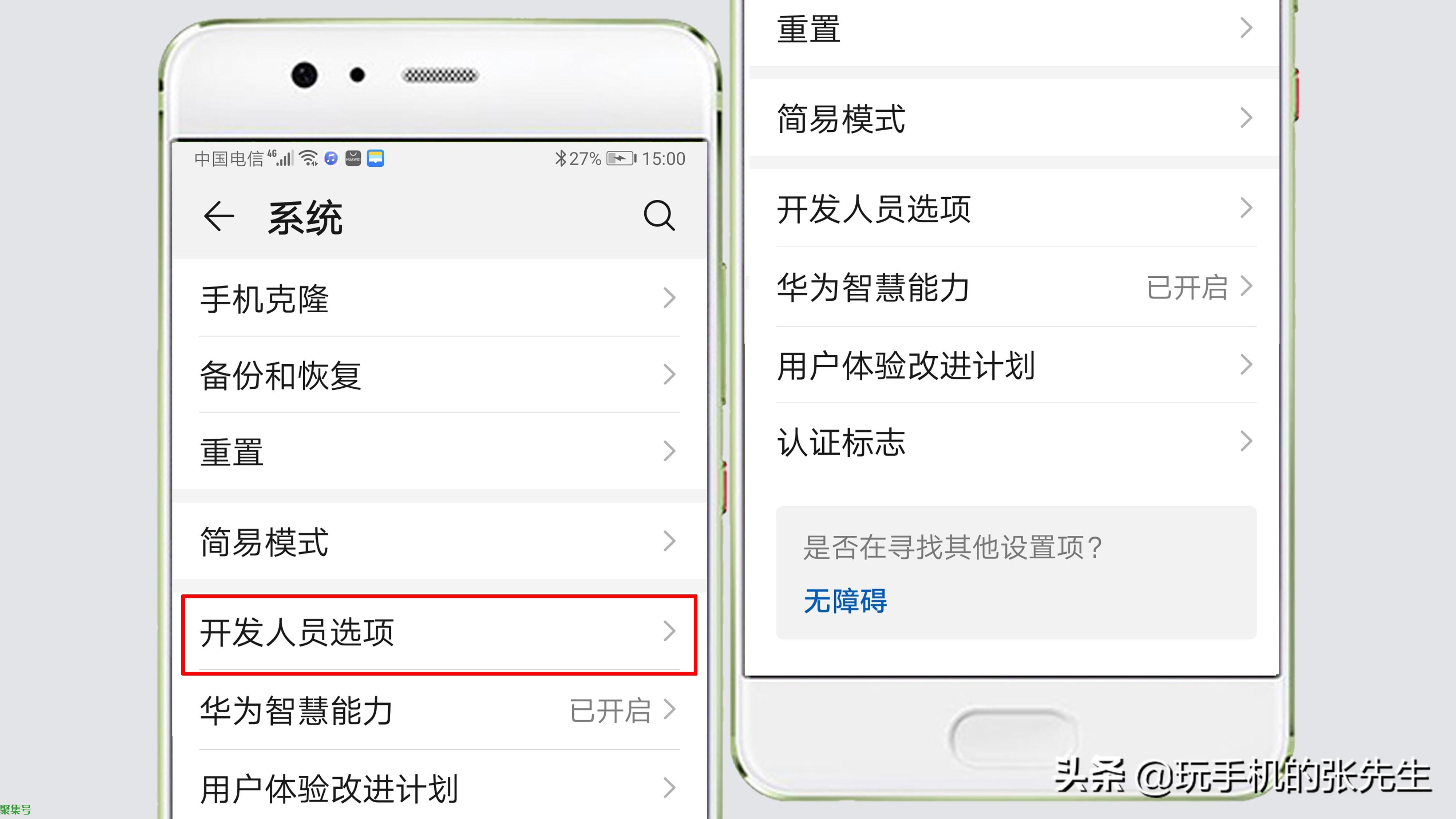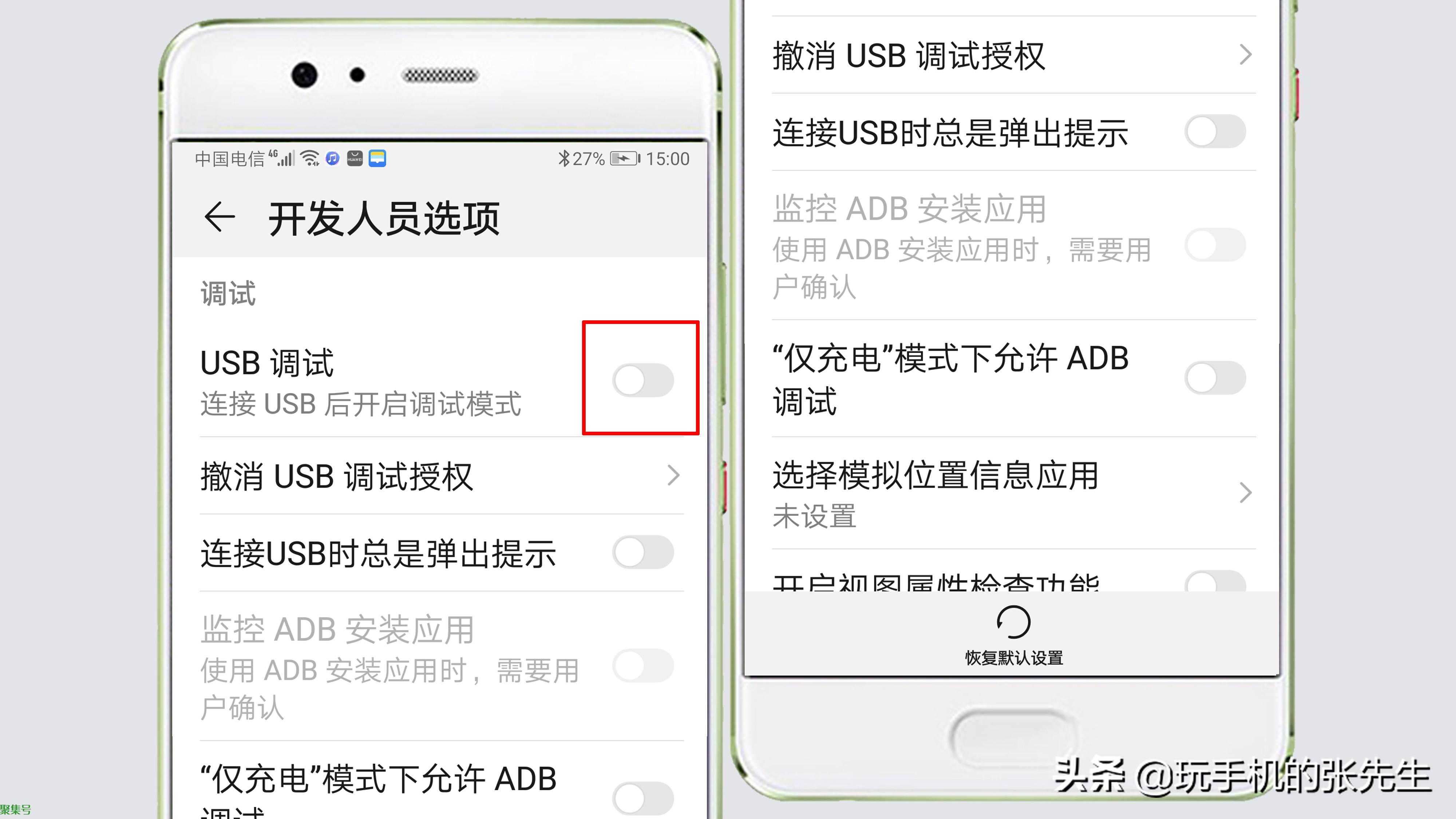 华为手机的USB调试模式,需要在“开发人员选项”中开启。