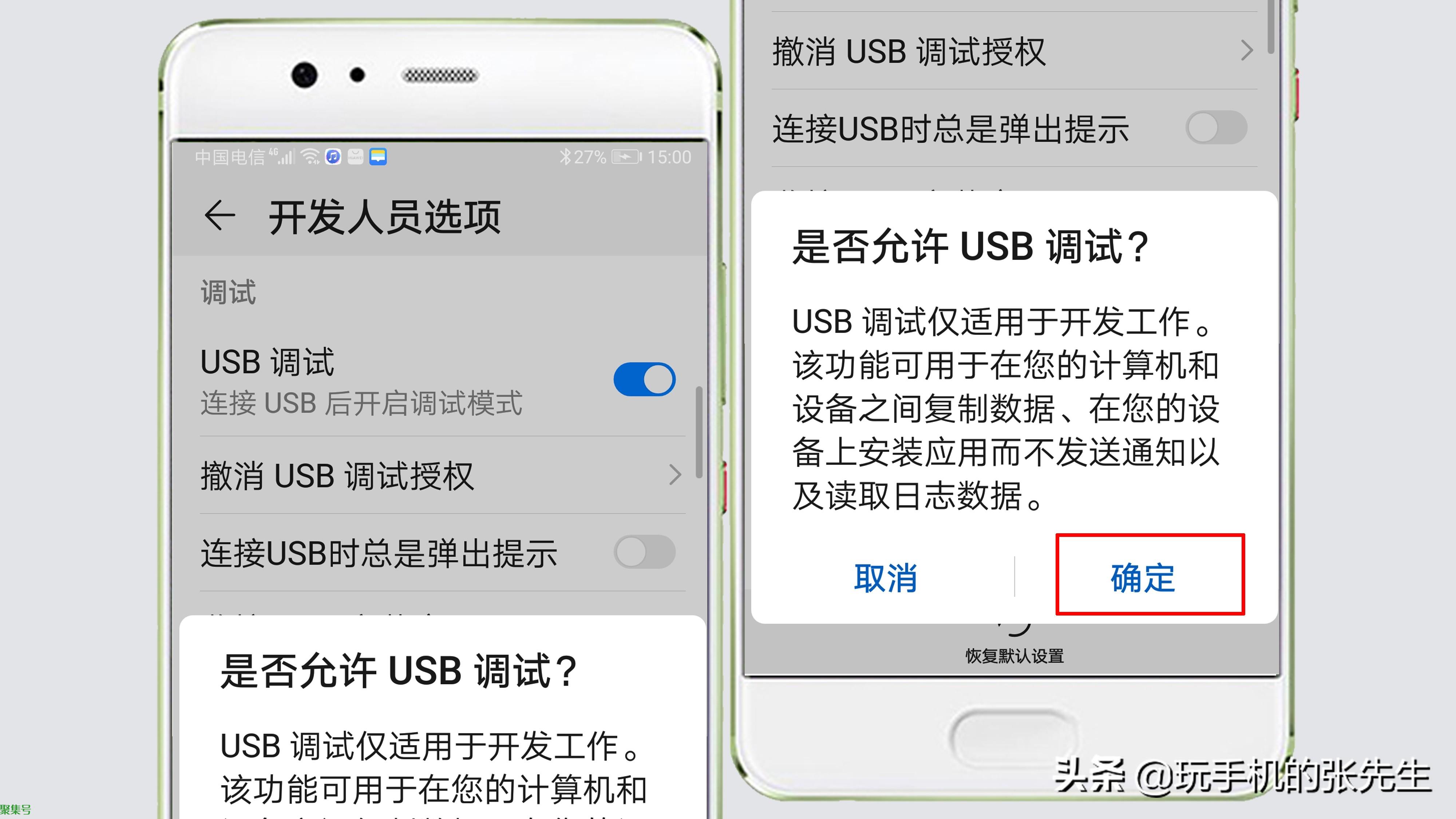 8、在系统弹出“是否允许USB调试?”对话框后,点击“确定”,即可完成操作。