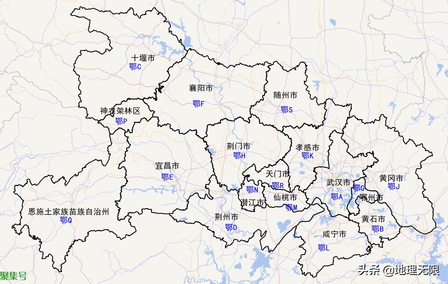 湖北省简称“鄂”,管辖12个地级市,1个自治州,3个省直辖县级市,1个省直辖林区。车牌号第一个字母从鄂A排到鄂S,分别是: