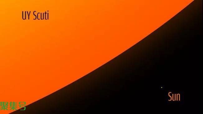 盾牌座UY是一颗特超巨星(hypergiant star),其半径达太阳的1700倍,是已知的最大恒星。如果将盾牌座UY放在太阳系中心,它能延伸到木星轨道之外,喷出的气体和尘埃更是远远超出冥王星轨道,达到400倍日地距离。