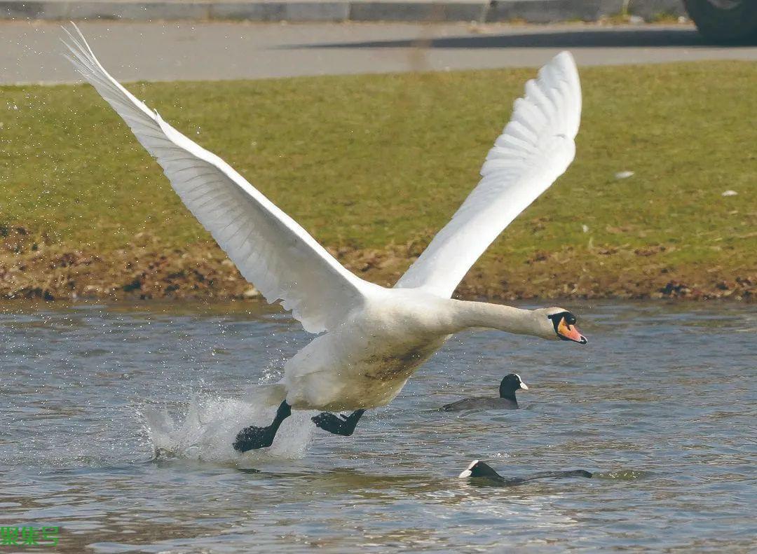 疣(yóu)鼻天鹅是最重的飞鸟,体重已经接近鸟类飞行的重量极限,虽然翼展宽度可达2米,它们起飞依旧困难。不似小型鸟类,只需展开翅膀,双腿用力一蹬就能直冲云霄,它们的起飞显得有些笨拙——必须经过很长的跑道并且通过“九蹬十八刨”才能产生足够起飞的速度。