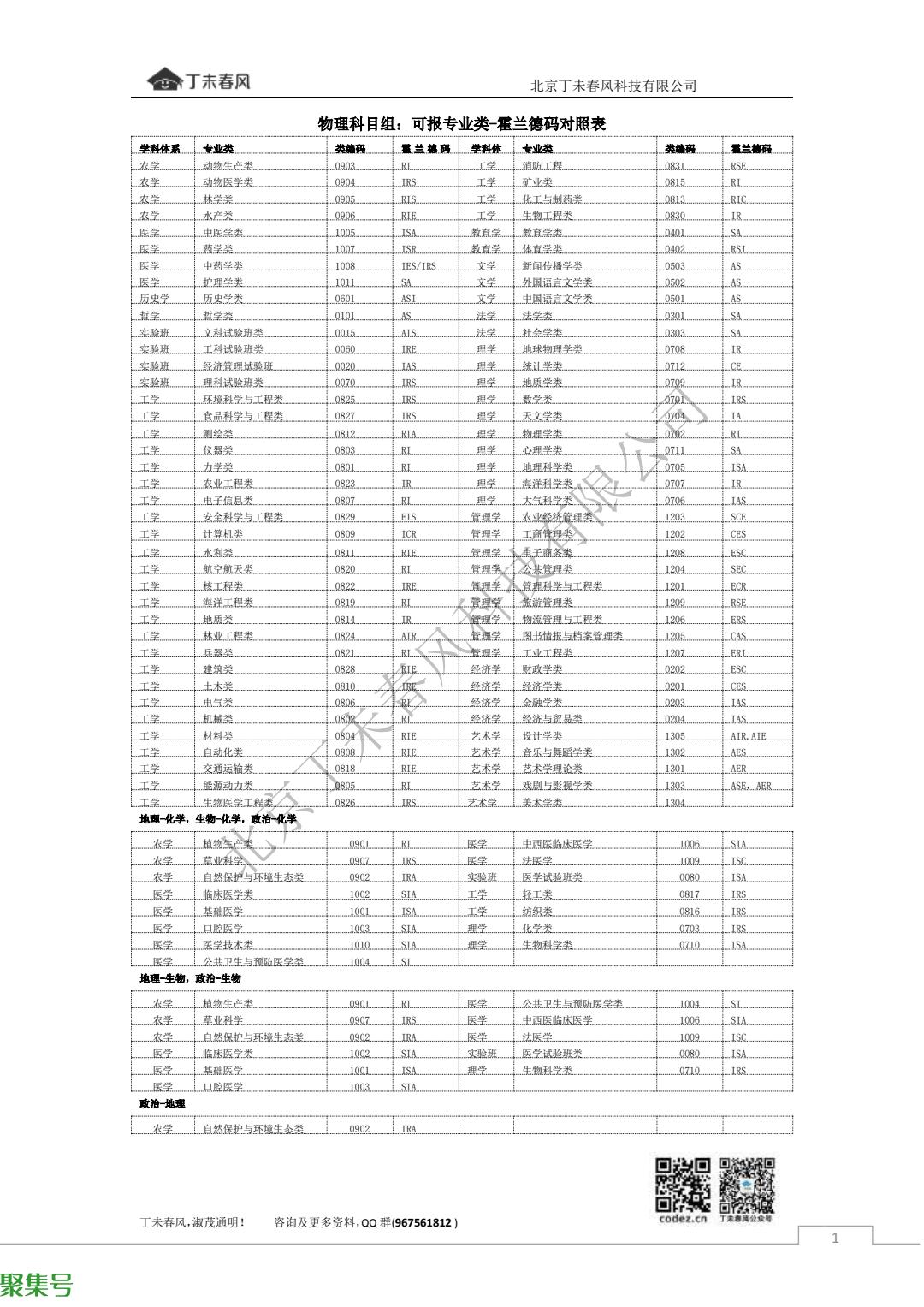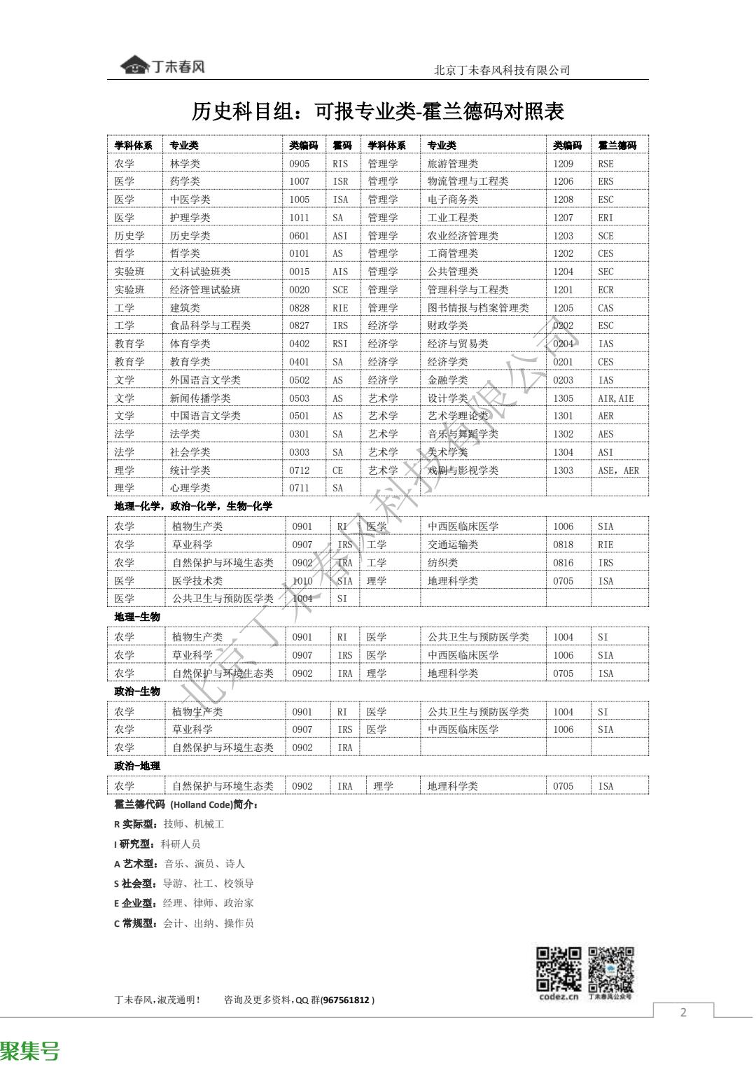 正文 霍兰德职业兴趣测试(霍兰德职业代码对照表) kpjjhadmin V管理员 /2022-01-24 22:46:54 /330 阅读 0124 河北各科目组可选专业范围霍兰德码对照表(1)根据自身科目类型选择科目组(2)图上上部第一部分为该科目组均可选的专业类范围(3)下部为各科目组自身可选范围(4)第四列,第八列是考生霍兰德测试的霍兰德码 声明:本文内容及图片来源于读者投稿,本网站无法甄别是否为投稿用户创作以及文章的准确性,本站尊重并保护知识产权,根据《信息网络传播权保护条例》,如果我们转载的作品侵犯了您的权利,请在一个月内通知我们,我们会及时删除。请将本侵权页面网址发送邮件到laoyang1981@qq.com,我们会及时做删除处理。