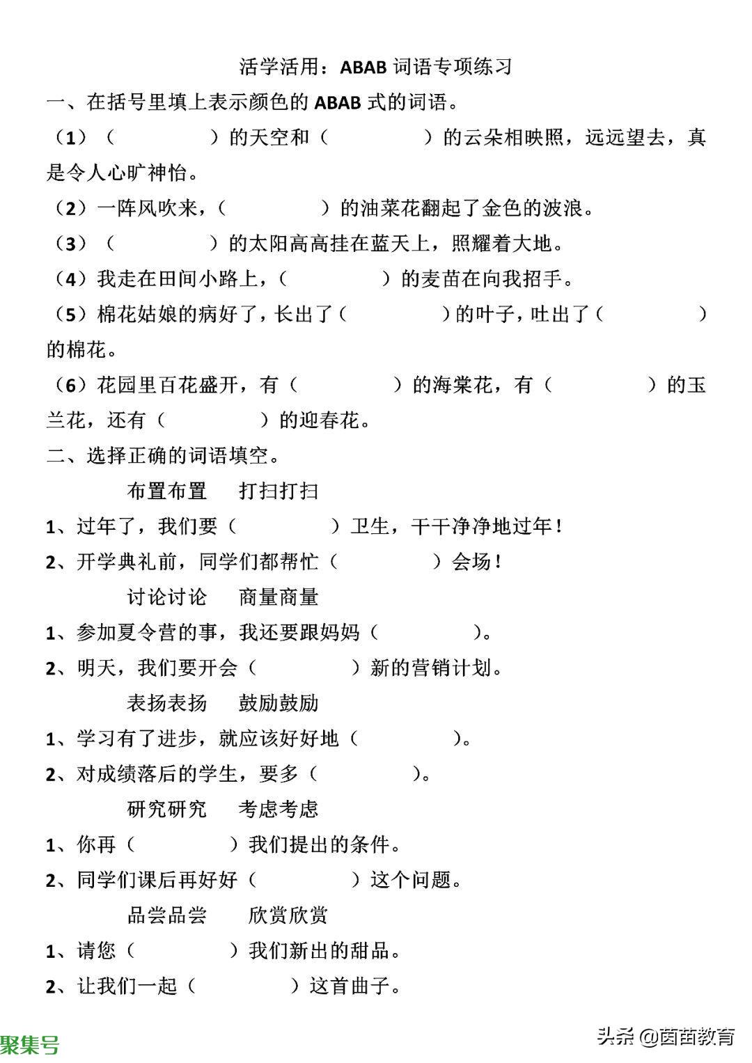 相信小朋友平时一定积累了不少ABAB式的词语,下面就请大家开动脑筋,完成下面的练习吧!