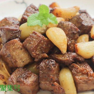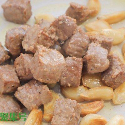 又到了每周图文教程的时间啦, 后台看到你们要牛肉的教程, 除了平时煎一煎加点调料, 还想看另外的做法, 哈哈 那必须安排上咧~ 今天的图文菜谱就是 蒜香牛肉粒 滑嫩多汁的牛肉吸满了黄油香和蒜香, 搭配炸的金黄绵软的蒜粒, 一口咬下去牛肉鲜甜还带着奶香, 真的好吃到一颗不剩~ 步骤简单好完成, 牛肉和蒜粒分别煎至金黄再炒一炒就好, 做好的牛肉咸香入味又好吃, 拌着米饭一起吃真的好吃到哭, 比外面餐厅吃的还要好吃, 分分钟光盘~ 牛肉营养丰富,高蛋白低脂肪, 富含氨基酸、b族维生素和矿物质, 坚持吃可以补铁补血,增强免疫力哦, 关键是还吃不胖呢, 家里的大朋友小朋友都可以多吃哦, 趁着假期赶紧动手试试吧~