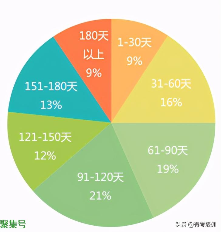 与整体人群相比,学霸们倾向于选择更短的备考时长。61-90天与31-60天的所占的比例之和几乎占了所有高分学生的一半。另外,让人略有意外的是,在整体人群中非常流行的选择「91-120天」,在学霸这里遭受了冷遇,反而是最不受欢迎的选项。