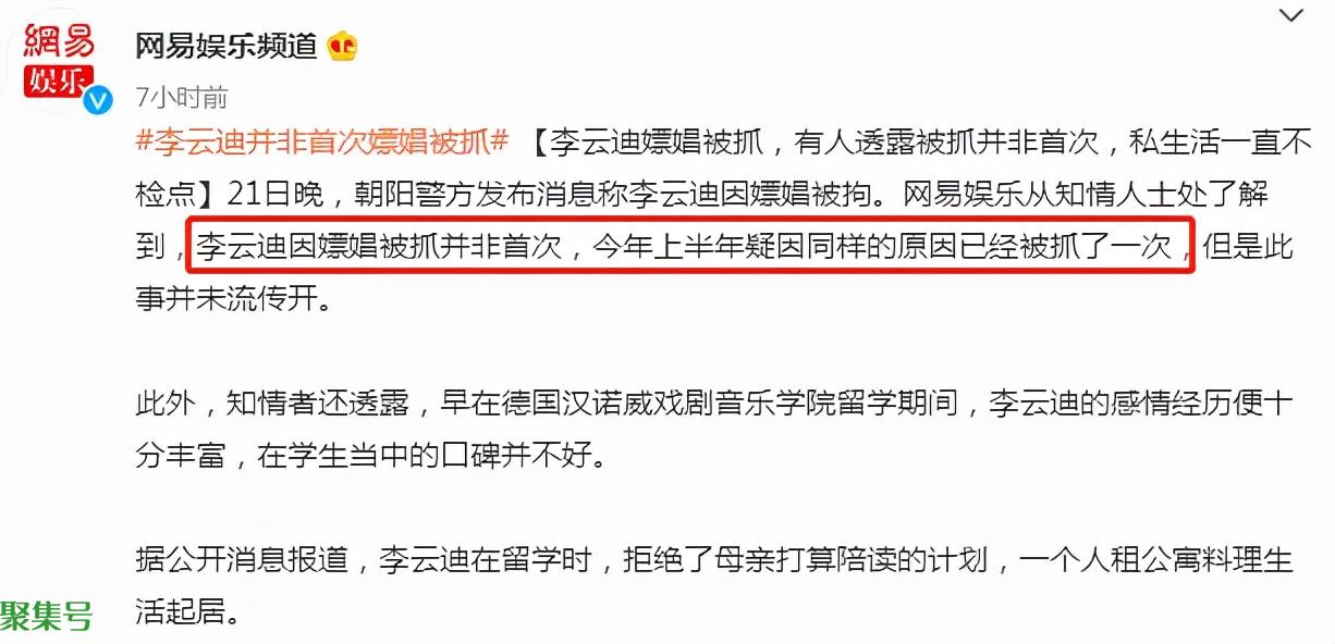 不过据媒体称,原来李云迪因piao娼被抓并非首次,有知情人透露说,今年上半年李云迪就因为相同的原因被抓了一次,但当时这件事没有流传开。甚至知情人还爆料,李云迪当年在德国留学期间,感情经历就很丰富,在学生中的口碑并不好。看来,李云迪私生活不检点也是由来已久。