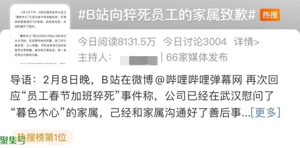 半个月前,“B站向猝死员工的家属致歉”话题冲上热搜榜第一位。和家属沟通好善后事宜后,B站称,将用最大力度扩招审核人员,降低人均工作压力。
