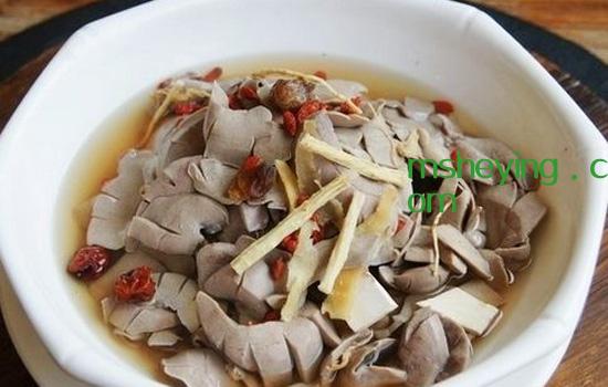 (3)用旺火烧开后撇去浮沫,加入枸杞子、葱姜,用微火炖至熟烂。