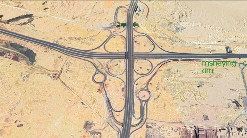 可以看到这一地区的的植被非常少,但这里的路网规划倒是比较整齐,这块区域是地处开罗沙漠地区的一条十字路口,整个路网都是非常的宽。