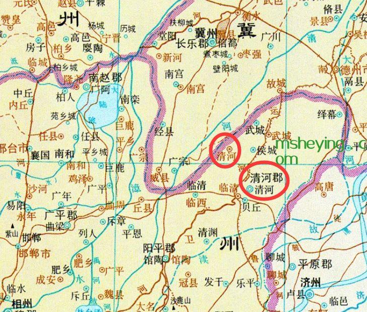 2、北齐天保七年(556年)于汉信成故城置清河郡及武城县。隋开皇六年(586年)置清河县,治今县西;改贝丘县为清阳县,治今清河县西北。