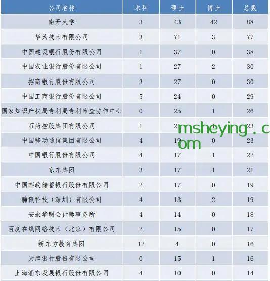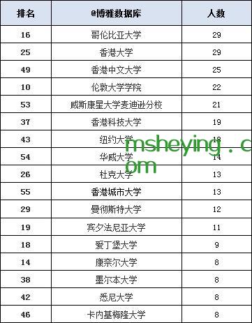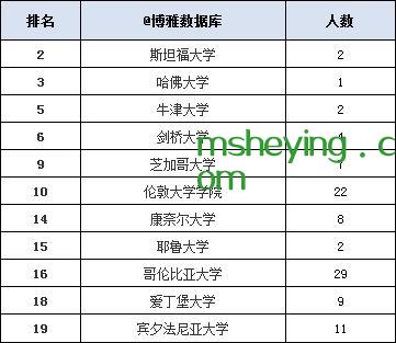 世界排名前20高校留学人数: