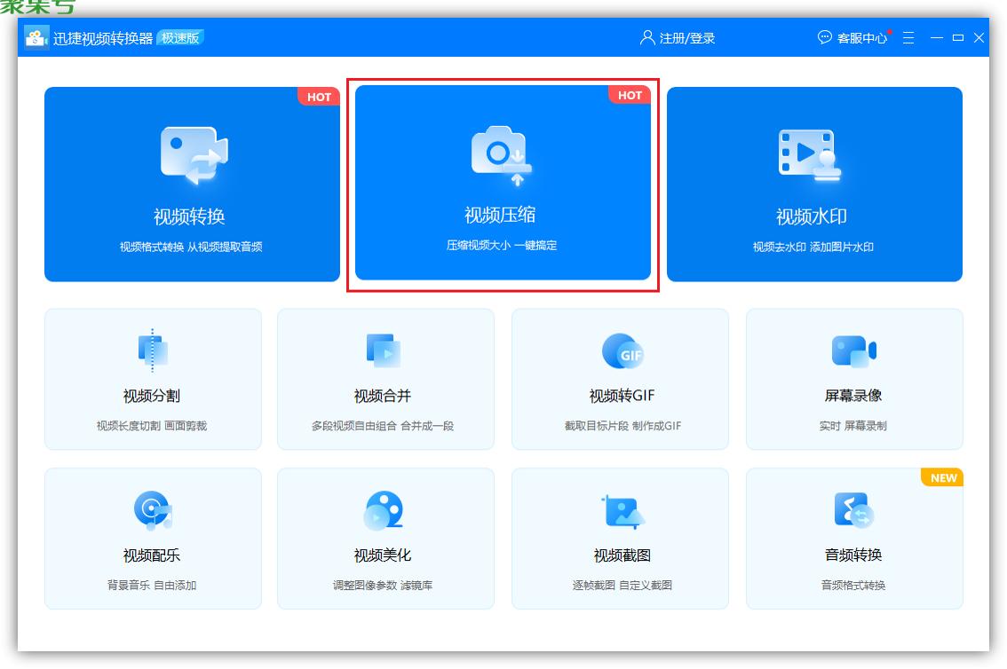 电脑中最占用空间的就是视频文件了,对于一些超大文件的视频,我们可以采取压缩,在电脑上打开「迅捷视频转换器」,选择「视频压缩」功能。