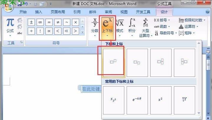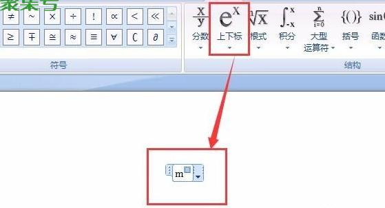 5、然后选择上下标图标,然后选择需要的上标格式点击后就可以在word文档中生成相应的格式框了,在这些对应的方框中输入m,然后在上标中输入2就可以了。