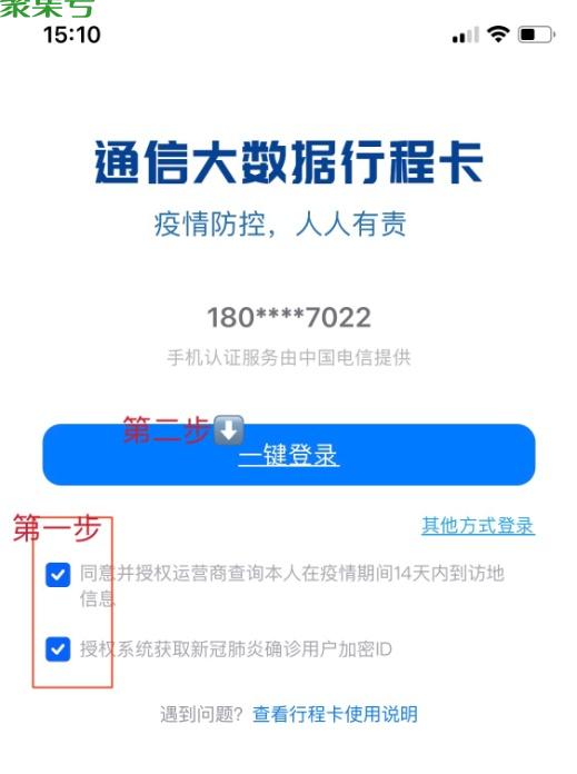 应用市场下载“通信行程卡”APP,同意两个选项后电话号码“一键登入”便可,下次使用直接打开APP就可以显示。