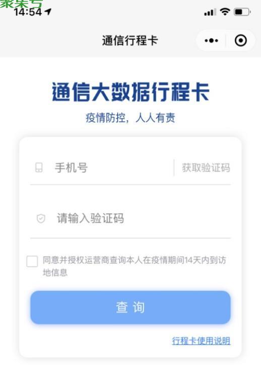 通过微信、支付宝扫对应二维码进入,输入电话号码及验证码,选择“同意”,即可获取行程码。