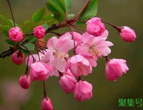 很多人经常会将它和桃花搞错,虽然都是淡粉色的花朵,但是它们还是有所不同的。垂丝海棠的每根枝条能开出好几朵花,而且每朵花都有点含苞欲放的感觉,花型比较简单,但是观赏性极佳。
