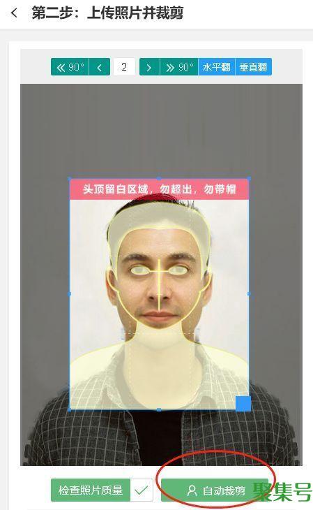 4、上传照片,点击“自动裁剪”按钮,就可以自动识别人物并且裁剪成标准的证件照尺寸大小。