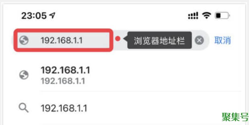 3、手机打开浏览器,在浏览器顶部的地址栏里输入该路由器正确的登录地址,比如192.168.1.1 然后按“前往键”访问该地址。
