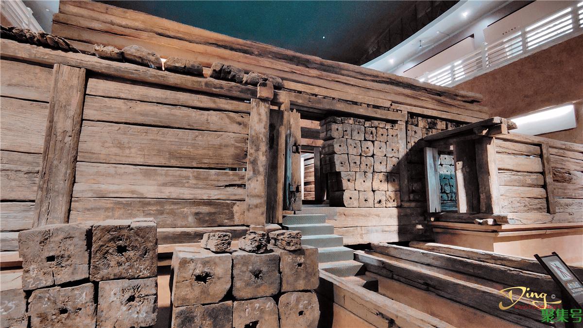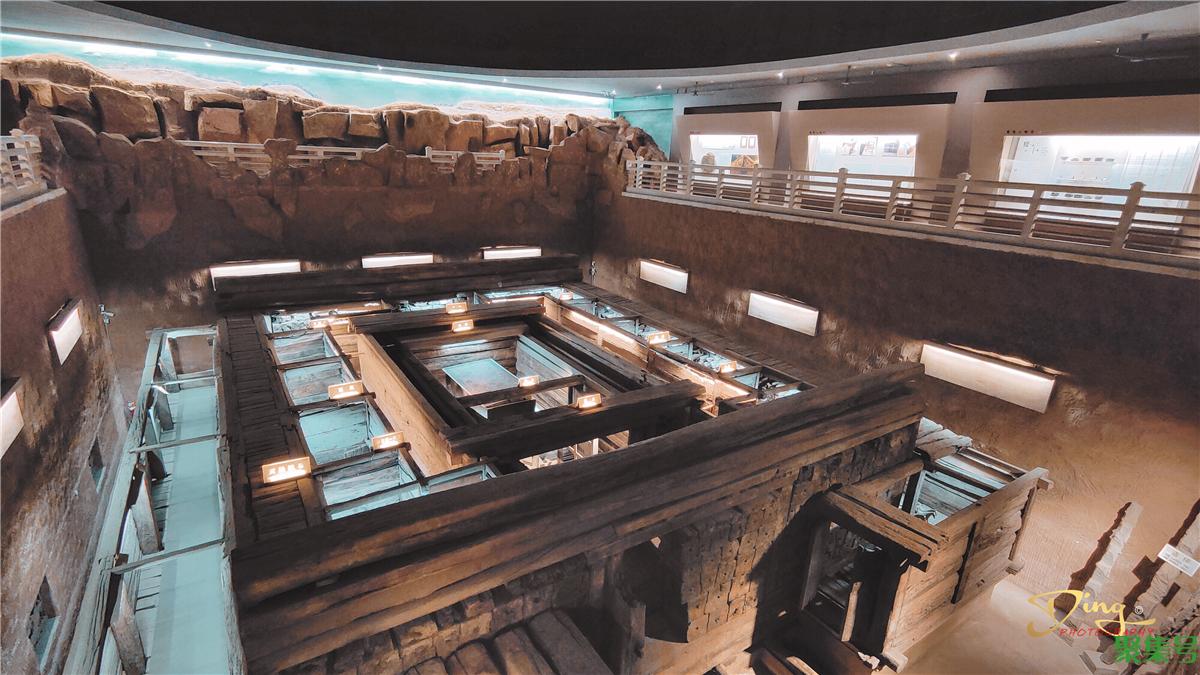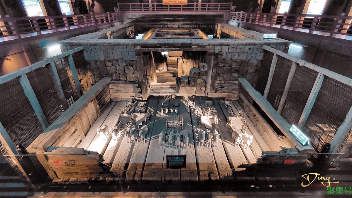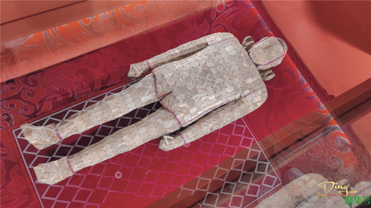 苑中展出了西汉第一代广陵王刘胥及王后的墓葬,属帝王级的“黄肠题凑”式木椁墓,规模宏大,结构严谨,是全国罕见的大型墓葬之一,并出土金缕玉衣残片,距今已有两千多年的历史。