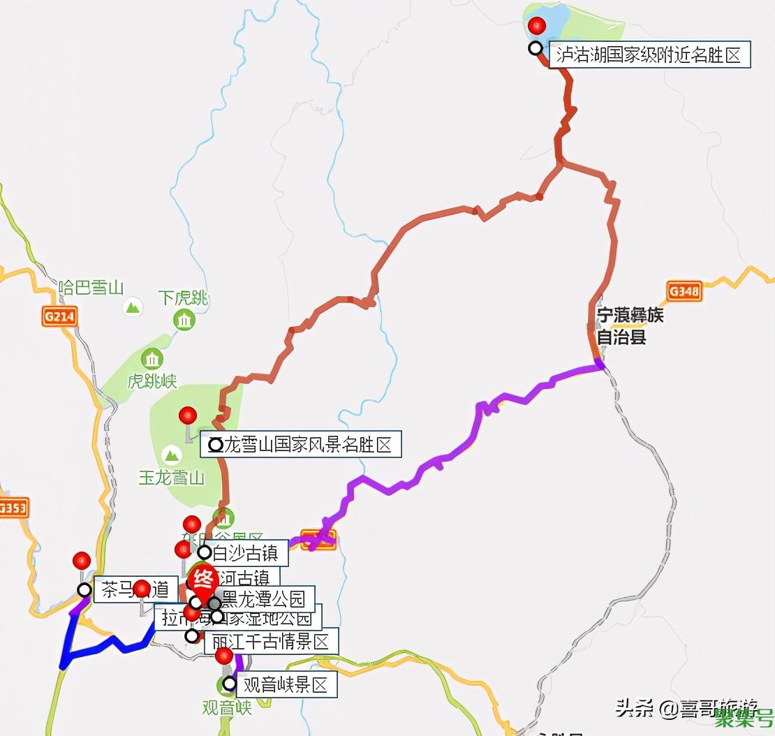 2、云南丽江十大景点自驾游行程路线:云南丽江-丽江古城-丽江千古情景区-观音峡景区-黑龙潭公园-拉市海国际湿地公园-茶马古道-束河古镇-白沙古镇-玉龙雪山-泸沽湖国家级风景名胜区-云南丽江。