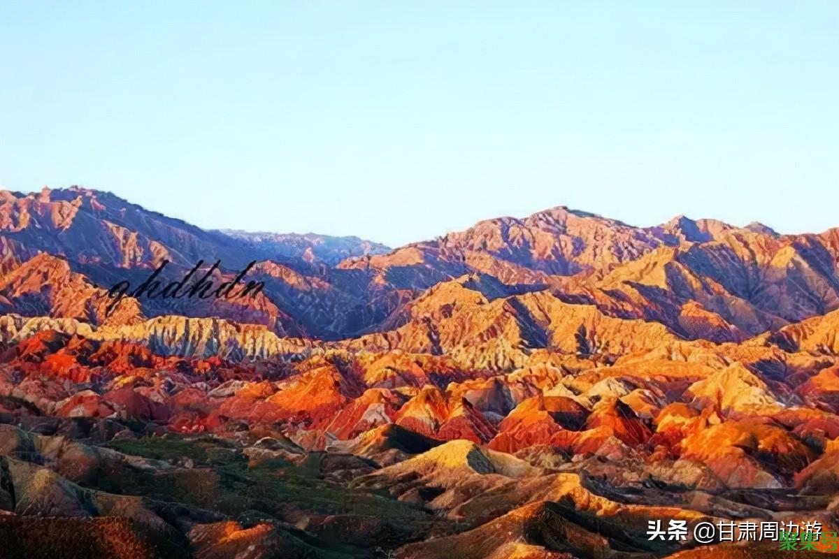 张掖丹霞国家地质公园是中国唯一一个融合了丹霞地貌与彩色丘陵的景观区,主要包括冰沟景区和彩色丘陵景区,峰林和山峦互相照影,呈现出亮眼的红褐色。