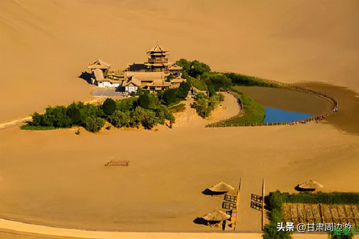 月牙泉被称为“沙漠第一泉”,早在汉代就是著名的游览之地。月牙泉处于高高的鸣沙山中间,由于地势原因永远不会被沙子填满,是全球独一无二的沙漠奇景。