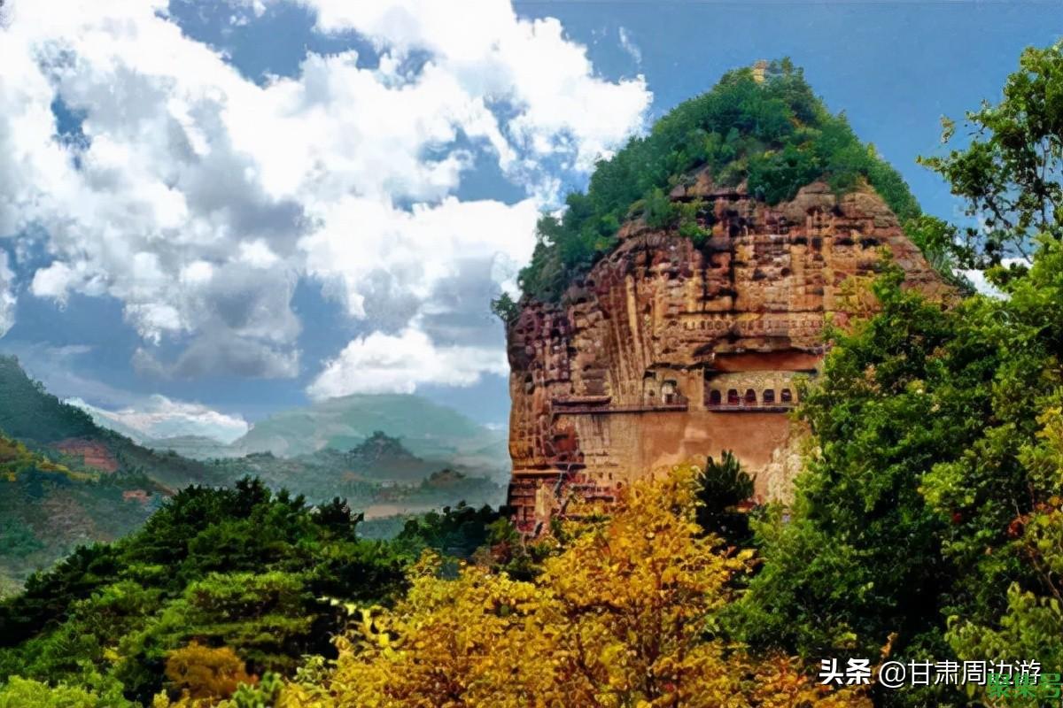 麦积山石窟,中国四大石窟之一,山形像极了麦垛,故此得名。景区共有景点180多个,以泥塑艺术最为闻名,是中国泥塑艺术发展史的陈列馆。