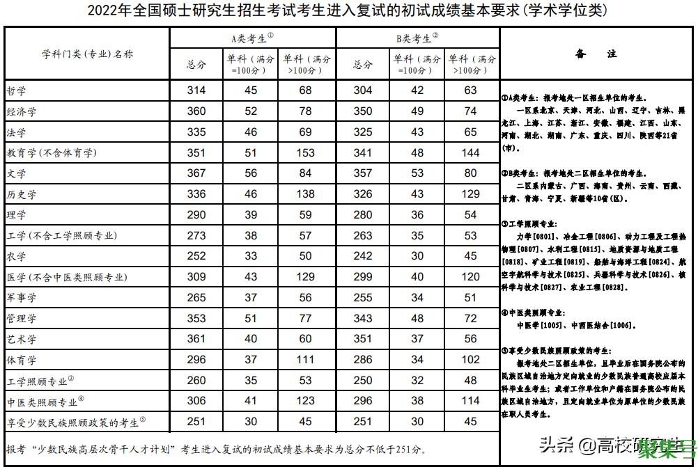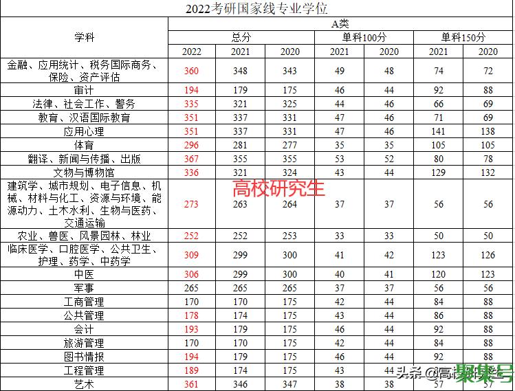 相比于2021年考研国家线普遍微降,今年各个学科的考研国家线则出现了普遍性上涨。学硕一共16个学科仅有农学、军事学维持了去年的国家线水准,其他的学科全部都出现了不同程度的上涨;专硕的20个学科同样也是这个规律,仅有军事、工商管理、旅游管理的国家线与去年保持持平,其他学科全部都是上涨。