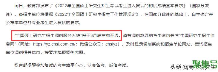 国家调剂系统3月底开通,大概率3月22日那一周!