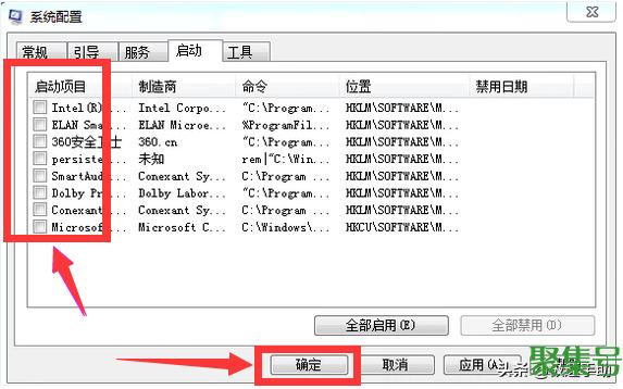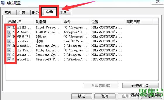 第三步,在【系统配置】对话框中,点击选择【启动】模块,所显示出来的列表就是电脑开机启动项。