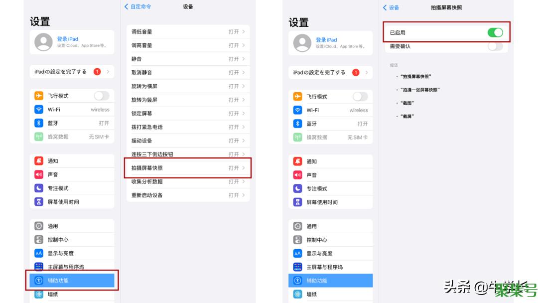 在iPad上,还可借助【语音控制】进行自定命令快速截图。