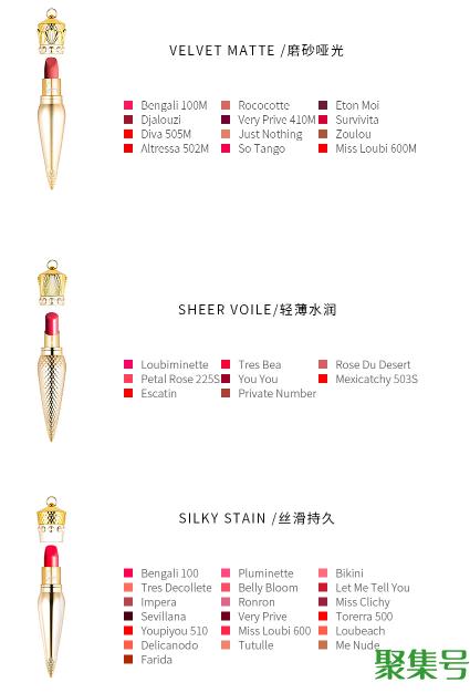 CL38色口红总共有3个系列,分别是silky satin/丝滑持久,velvet matte/丝绒哑光和sheer voile/轻薄水润三种质地。