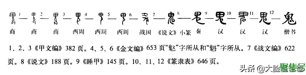 “鬼”字的现代发音来自于归,同时又有归字的含义,在最初的时候就表达的是人在死后的一种状态。所以只有人死才称其为“鬼”,除人之外的其他生灵死后则不能称为“鬼”。但是问题就来了,甲骨文的“鬼”字描绘的人的头部为什么是一个又大又方的样子呢?