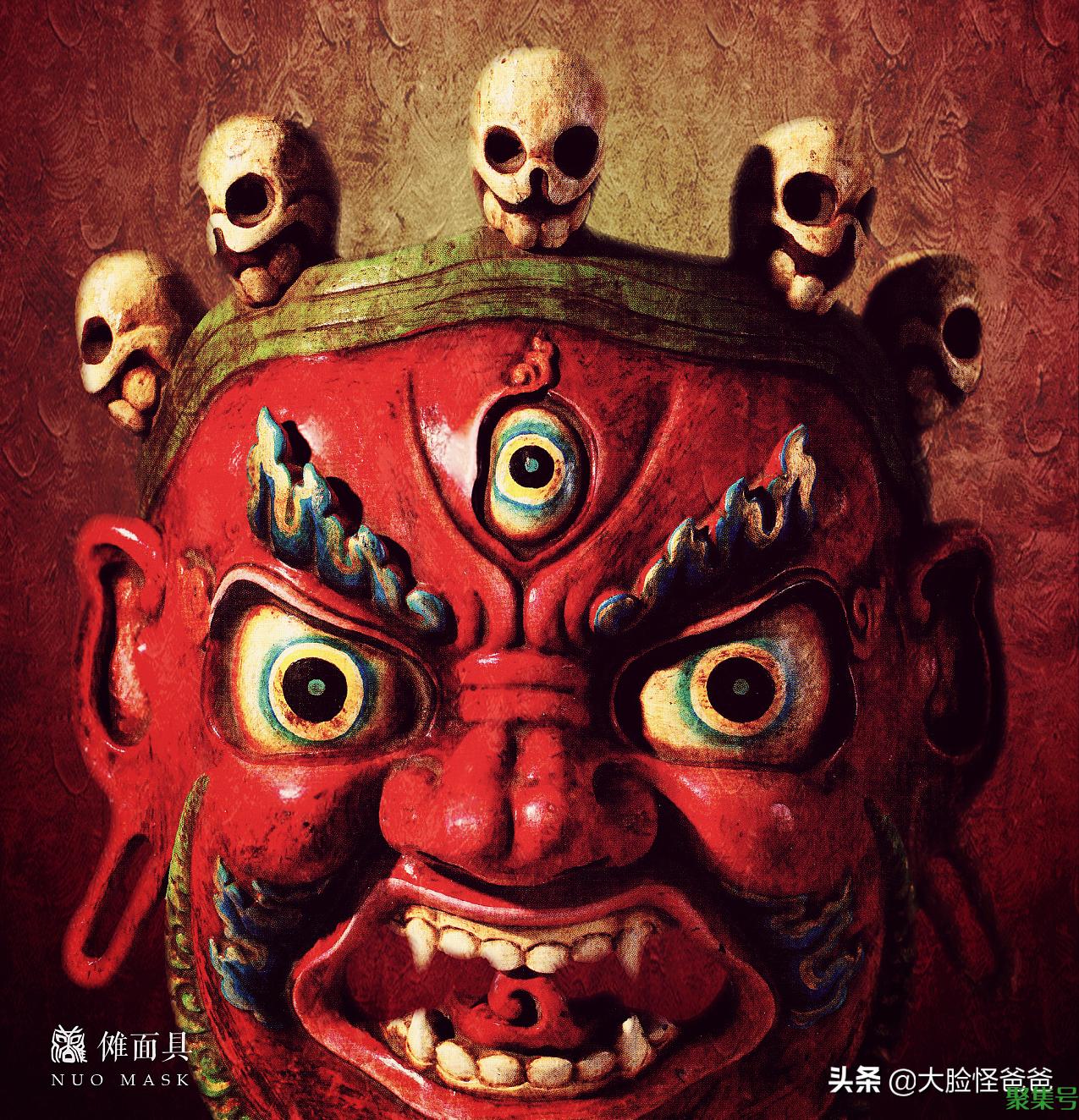“鬼”字的另一种解释认为,又大又方的头部代表的是面具,“鬼”指的是带着巨大面具,扮演着已经逝去祖先的神巫。这种面具,在各种出土的文物中都屡见不鲜,最为著名的当然非四川广汉三星堆出土的青铜面具莫属了。