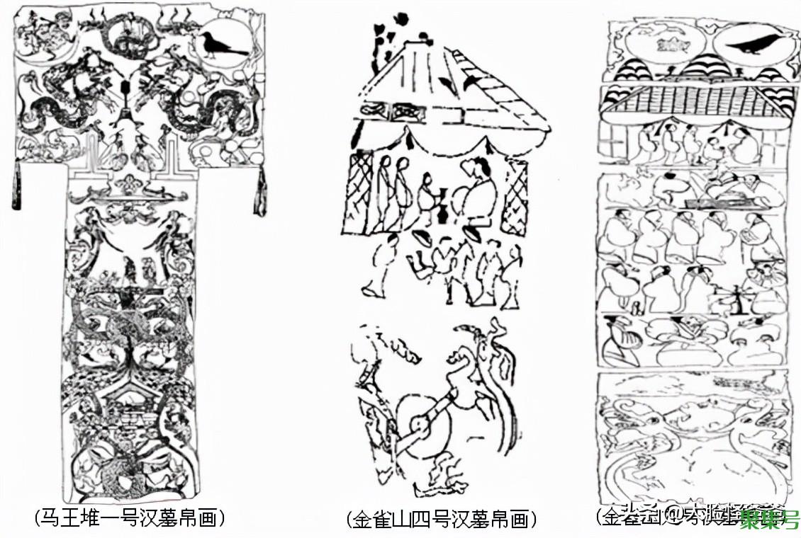 先后发现的这两幅帛画,不仅画面布局、帛画内容都十分相似,而且都发现于墓主的棺盖之上。因为它们都具有同样的用途:都是汉代丧葬礼仪中用来引领亡魂的“经幡”,也被叫做“招魂幡”。