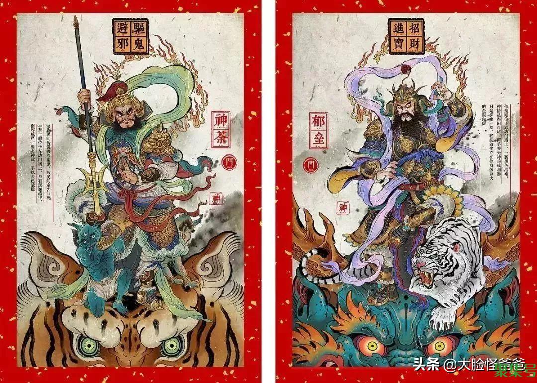 很明显,度朔山上神荼郁垒“索鬼饲虎”的故事,只不过是宗布神话的一种演变。击杀大羿的桃棓,因为传说有辟邪的功效,演化成了度朔山上的大桃树,而且在后世民间更是形成了用桃木辟邪的风俗。神荼郁垒也成了门神的最早形象,经历了数千年的时光,虽然不断演变但是一直流传至今。